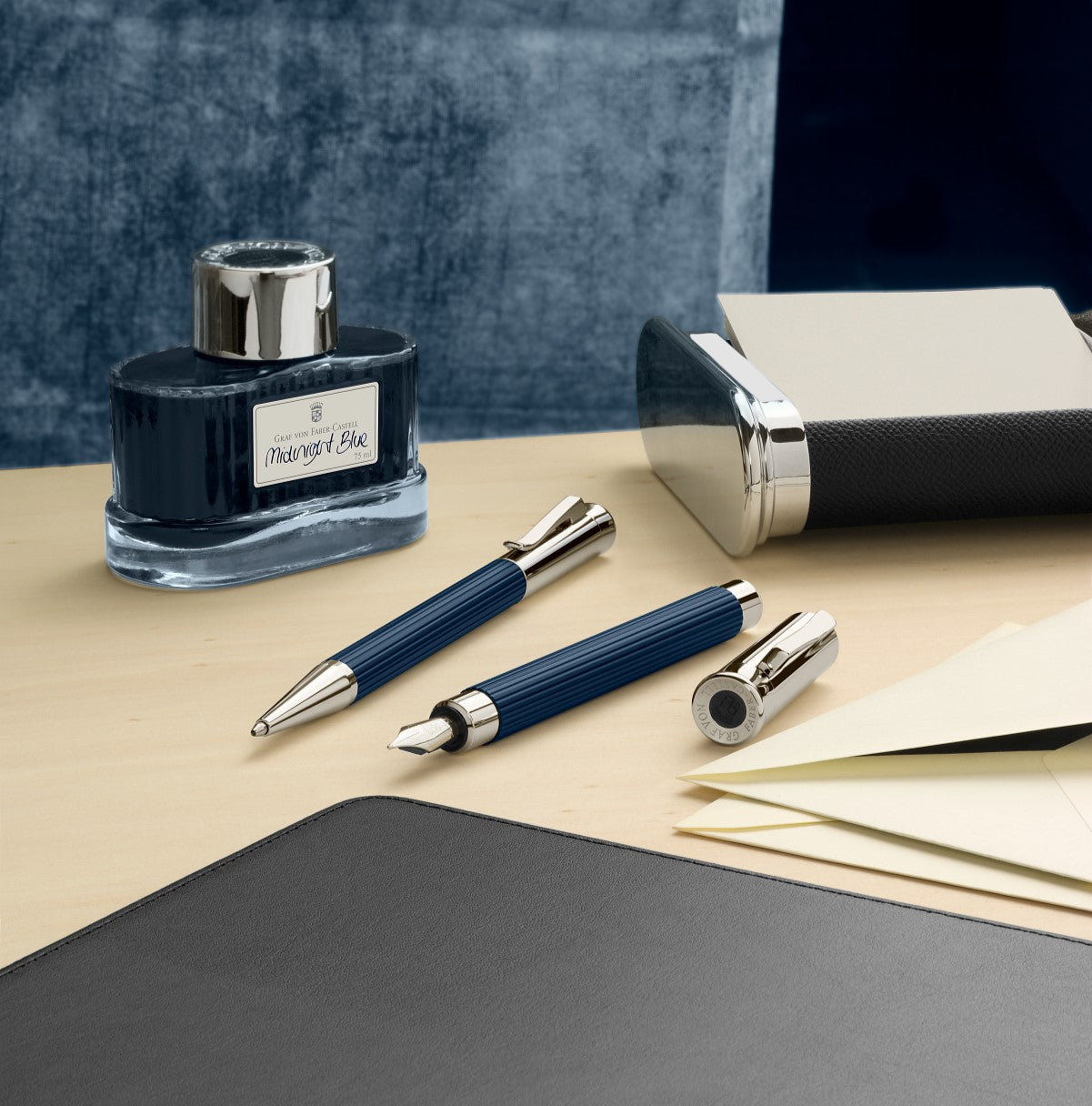 タミシオはメタルバレルの重量感とマットラッカーの優しさが同居する伯爵コレクションのエントリーモデル。クラシックのリブパターン軸やトランペットシェイプの天冠など、基本要素を残しつつ、どことなく柔和に仕上げ、ギフトにも人気があります。